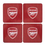 Featuring a red background with a white Arsenal crest in the middle of each coaster