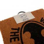 Natural colour coir doormat featuring the Batman logo and phrase “Welcome to The Batcave” in black