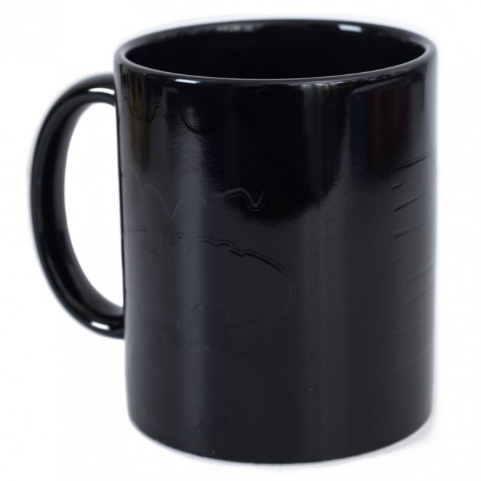Black mug featuring the Batman logos, which transfers to images of the Batmobile when hot
