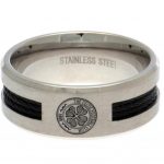 Stainless steel ring featuring a black rope insert