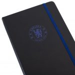 Premium black faux leather hardback notebook with a royal blue embossed Chelsea Crest