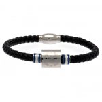 Black bracelet featuring stainless steel colour rings and an engraved club crest