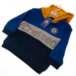 This hoody features a Chelsea crest and text with a yellow hood