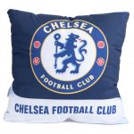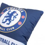 Blue cushion featuring a full colour Chelsea crest with text reading CHELASEA FOOTBALL CLUB across the bottom