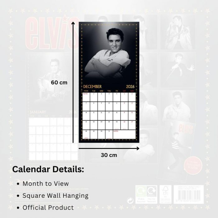 Home Stationery & Books Calendars & Diaries Elvis Presley Square Calendar 2026