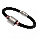 Black bracelet featuring stainless steel colour rings and an engraved club crest