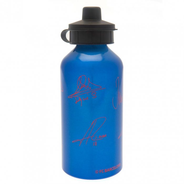 Metallic finish bottle featuring the Barca crest and official player signature prints
