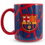 Red mug with a repeat Barca pattern and full colour club crest