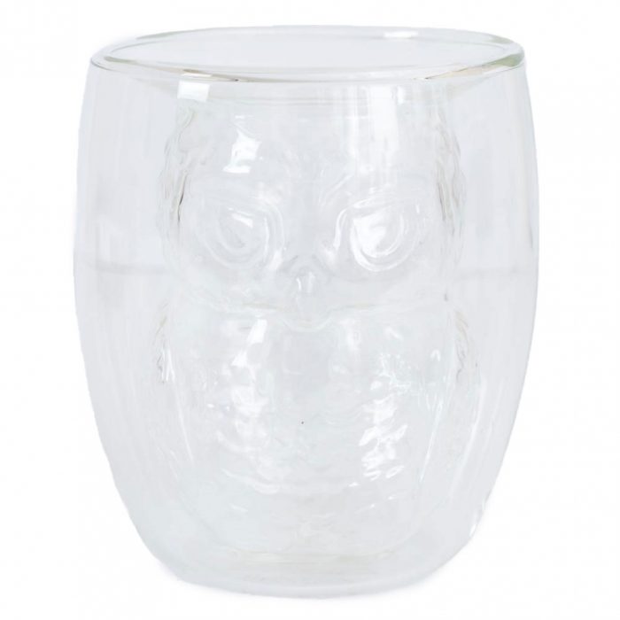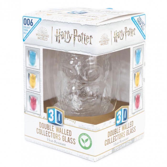A double-walled, heat-resistant glass featuring a beautifully crafted 3D depiction of Hedwig