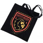 Black canvas tote bag featuring a large red and yellow Gryffindor crest to one side