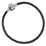 Black leather bracelet with a branded clasp