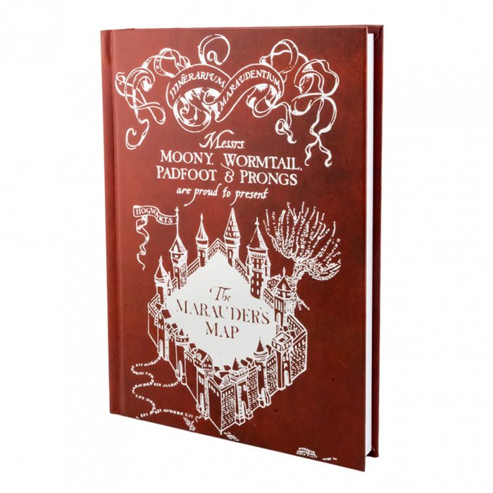 Showcasing the classic Marauder’s Map branding on the cover, with ‘Mischief Managed’ on the back