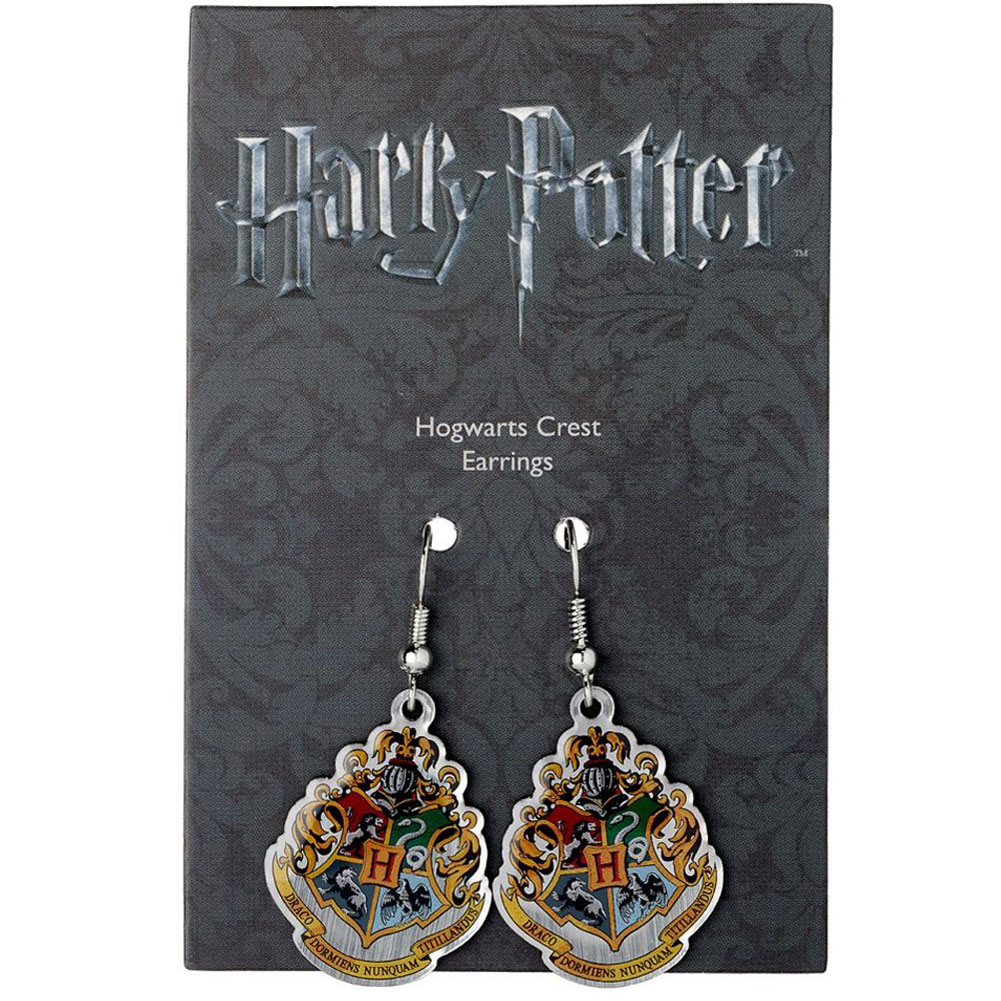 Features the crest of the famous school of witchcraft and wizardry on earring hooks