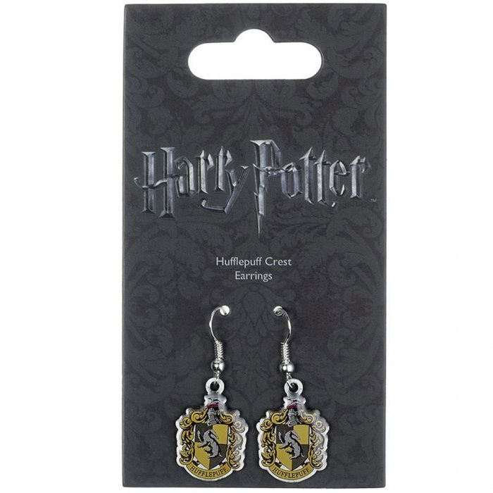 Features the crest of the famous Hogwarts House, founded by Helga Hufflepuff on earring hooks