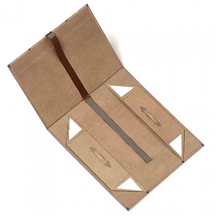 Complete with a magnetic strip to hold it closed and is finished with a ribbon tie