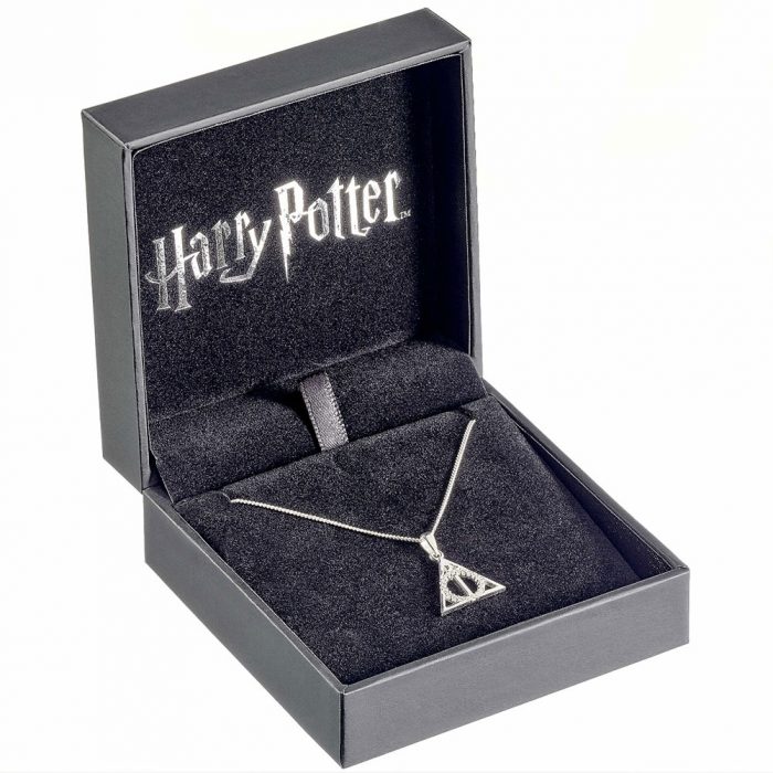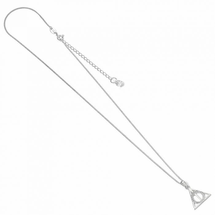 The iconic Deathly Hallows symbol charm on a sterling silver necklace