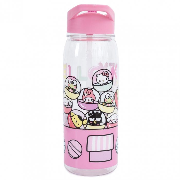 Featuring a pretty pink design showcasing Hello Kitty and her Friends across the bottle