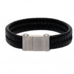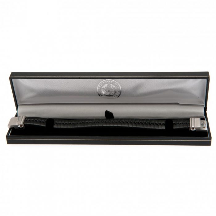 Black bracelet with a stainless steel magnetic clasp featuring and engraved club crest