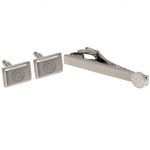 Stainless steel satin finish cufflinks featuring an engraved Leicester crest