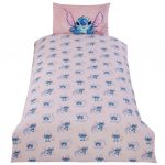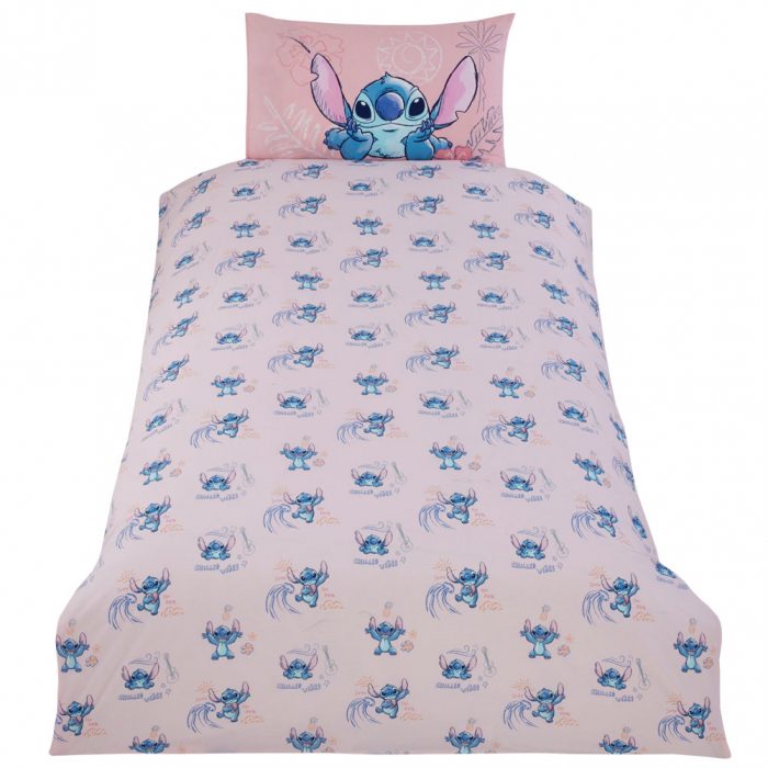 Dusty pink quilt cover featuring an Hawaiian motif of Stitch