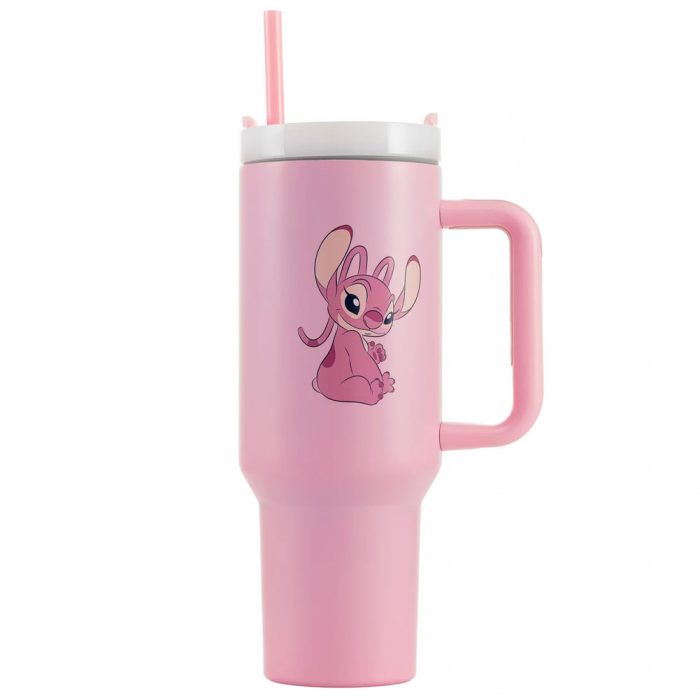 Pastel pink Angel 40oz thermal tumbler, ideal for all Lilo & Stitch fans of all ages