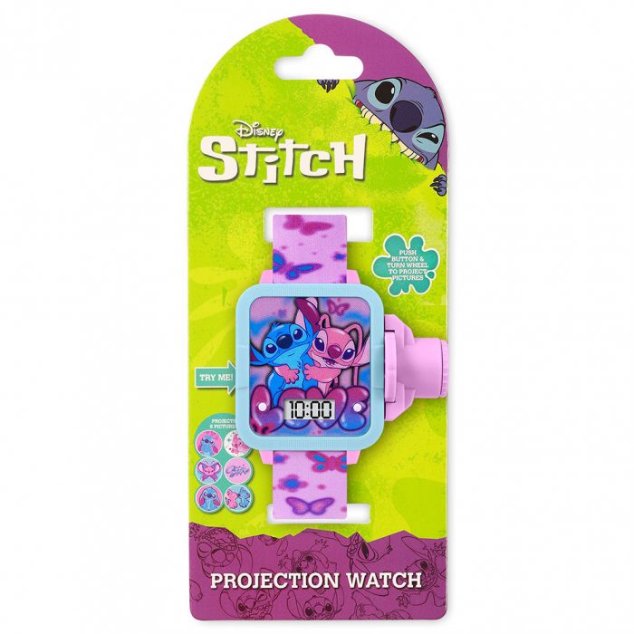Simply push a button to project 6 different Stitch and Angel images