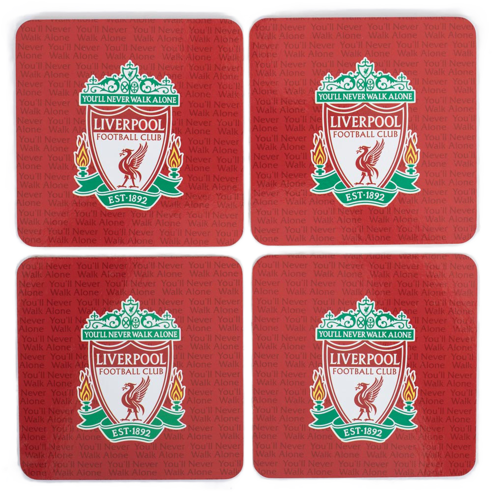 Featuring a red background with a full colour Liverpool FC crest in the middle of each coaster