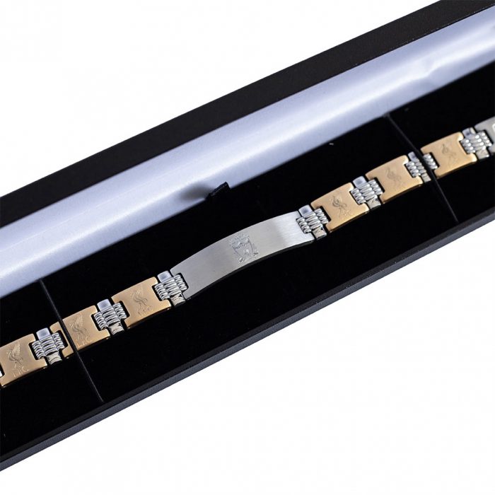 Featuring a Liverpool FC crest engraved plate and Liverbird engraved links