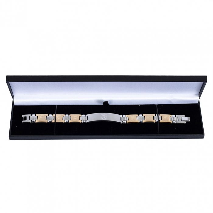Brushed stainless steel and ion plated bi colour link bracelet
