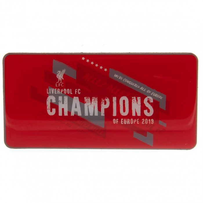 Features the Champions of Europe 2019 design on a red background