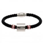 Black bracelet featuring stainless steel colour rings and an engraved club crest