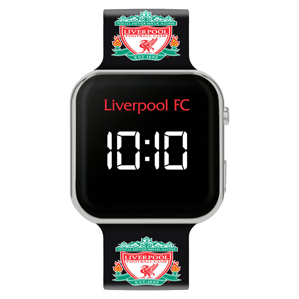 This watch features a big red LED display with Liverpool FC at the top of the screen, to easily tell the time and date