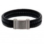Black bracelet with a stainless steel magnetic clasp featuring and engraved club crest