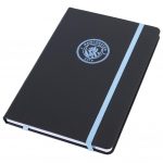 Premium black faux leather hardback notebook with a sky blue embossed Man City Crest