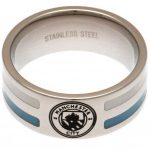 Stainless steel ring featuring sky blue and white colour inserts