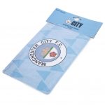 Sky blue metal sign featuring a retro, full colour Man City FC crest in the centre