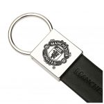 Black faux leather key strap with debossed Manchester United text