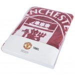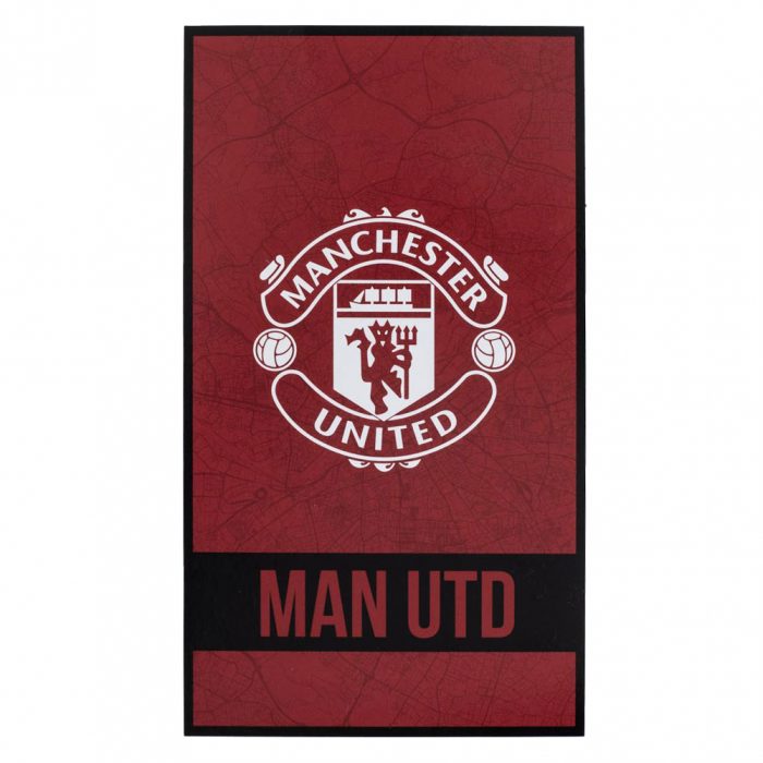 Identity design featuring a large club crest in white with red Man Utd text on a black band