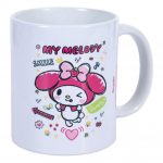 Featuring an image of a smiley My Melody surrounded by colourful icons