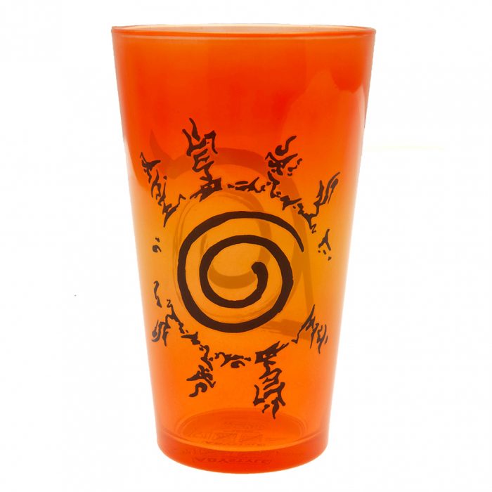 Naruto orange glass featuring the famous logos and symbols from the hit TV show