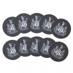 Black coasters featuring a white NUFC crest