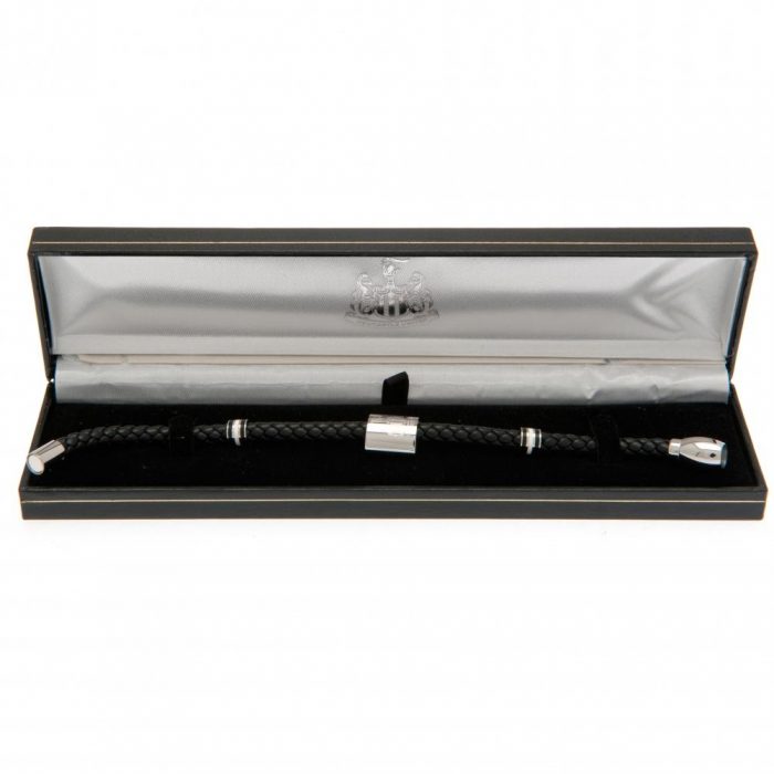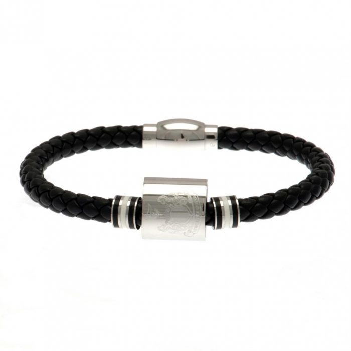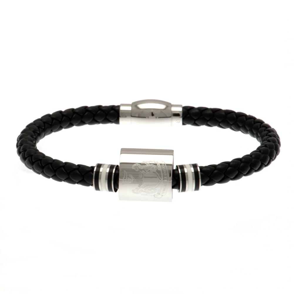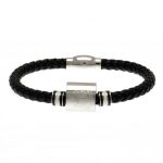 Black bracelet featuring stainless steel colour rings and an engraved club crest