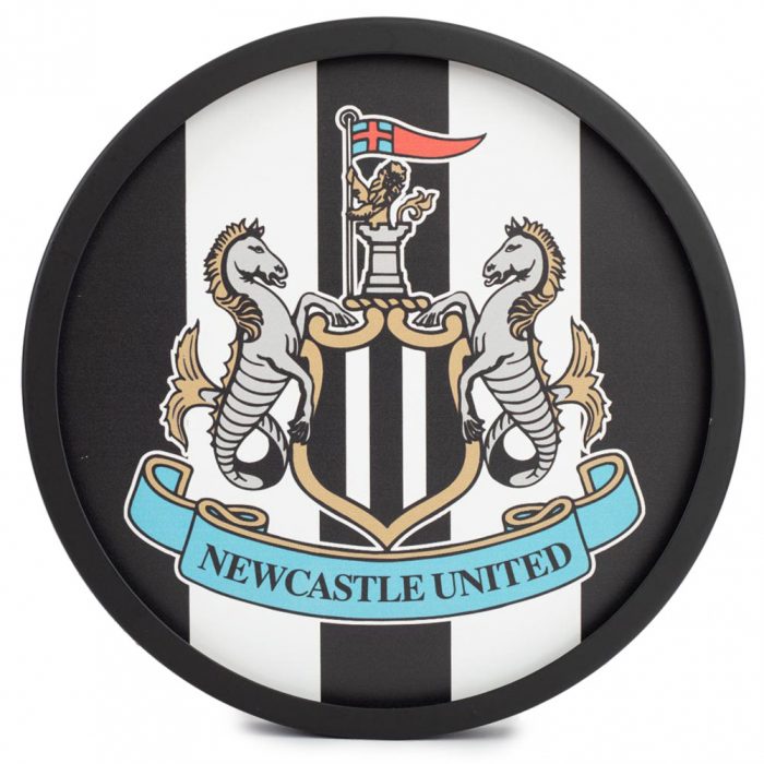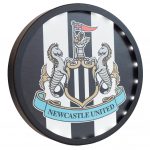 White LED lights with a striking black and white background featuring the Newcastle crest