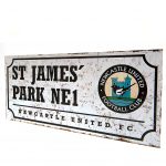 St. James Park NE1 road sign, the home of Newcastle United FC on a rustic look background