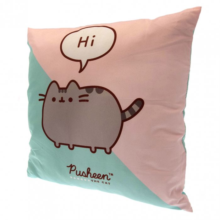 Vibrant cushion featuring Pusheen saying Hi