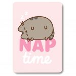 Baby pink blanket featuring a snoozy Pusheen in the middle with NAP time text