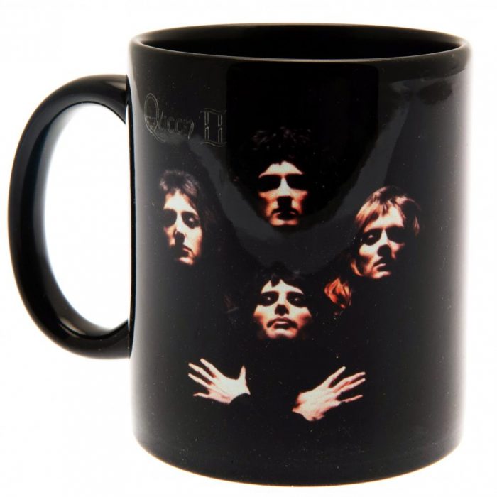 Features the famous Queen II album cover artwork on a black mug