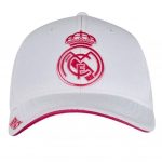 White classic design curved brim cap with a pink raised rubber Real Madrid FC crest