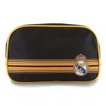 Striped design toiletries wash bag with a club crest