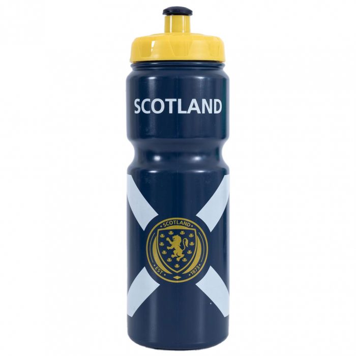 Navy blue drinks bottle with the Scotland crest in yellow on the front